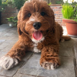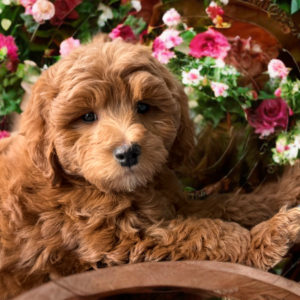 Introducing Alvin, Theodore, and Simon, a Gorgeous Trio of Mini & Medium Teddybear Goldendoodles! This litter promises a delightful mix of gorgeous, deep red. Expected to remain in the ideal size ranges and are perfect for families who want a versatile, lovable companion with a hypoallergenic, wavy teddy bear coat. This size is great for cuddling on the couch or going on walks.