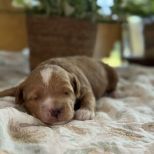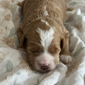 We are thrilled to announce the upcoming Petite Goldendoodle litter from our sweet mama Maple and the handsome tuxedo Giovani! These petite mini Goldendoodle puppies are expected to mature in the perfect size range of 12–20 lbs, making them ideal for families who want a smaller Goldendoodle with all the beauty, intelligence, and personality this breed is known for. Their coats will be a deeper tanish-red with white markings, fluffy, soft, and hypoallergenic non-shedding—perfect for allergy-friendly homes.